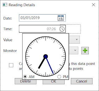One of the perks of doing my own stuff is that I don’t have any formal deadlines, unlike when I consulted for other people. So I can prioritise “properly” over “quickly”. One such area was the usability of a small part of the application. It might be small but it was critical – it is how someone would enter one of their glucometer readings. The control to capture the timestamp of a reading – its date and time – just wasn’t usable. So, I took the wheels off, and set about re-working the screen. The “date” aspect was no problem, as there was something perfectly good that I could use out-of-the-box. But the “time”…well, I’ve probably spent most of the last fortnight trying to find something that looks good and is usable. I must have evaluated many people’s efforts at a TimePicker, to see if I could either use it or extend it so I could use it.