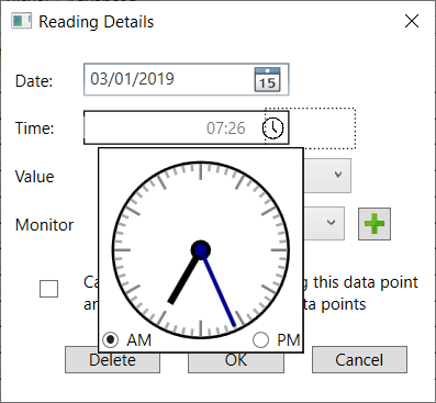 One of the perks of doing my own stuff is that I don’t have any formal deadlines, unlike when I consulted for other people. So I can prioritise “properly” over “quickly”. One such area was the usability of a small part of the application. It might be small but it was critical – it is how someone would enter one of their glucometer readings. The control to capture the timestamp of a reading – its date and time – just wasn’t usable. So, I took the wheels off, and set about re-working the screen. The “date” aspect was no problem, as there was something perfectly good that I could use out-of-the-box. But the “time”…well, I’ve probably spent most of the last fortnight trying to find something that looks good and is usable. I must have evaluated many people’s efforts at a TimePicker, to see if I could either use it or extend it so I could use it.