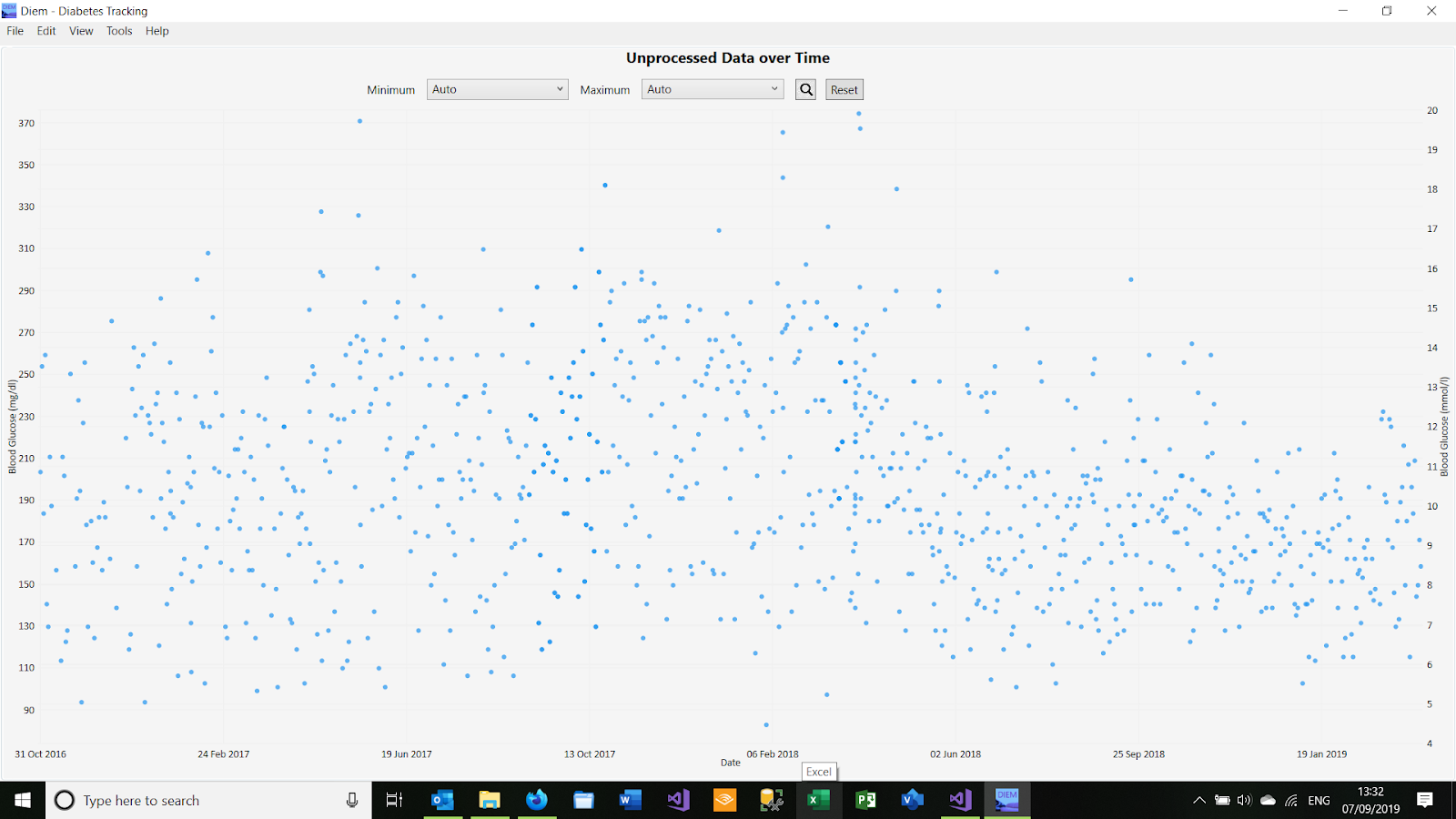 Please look at this chart of my daily blood sugar readings, from a while ago: