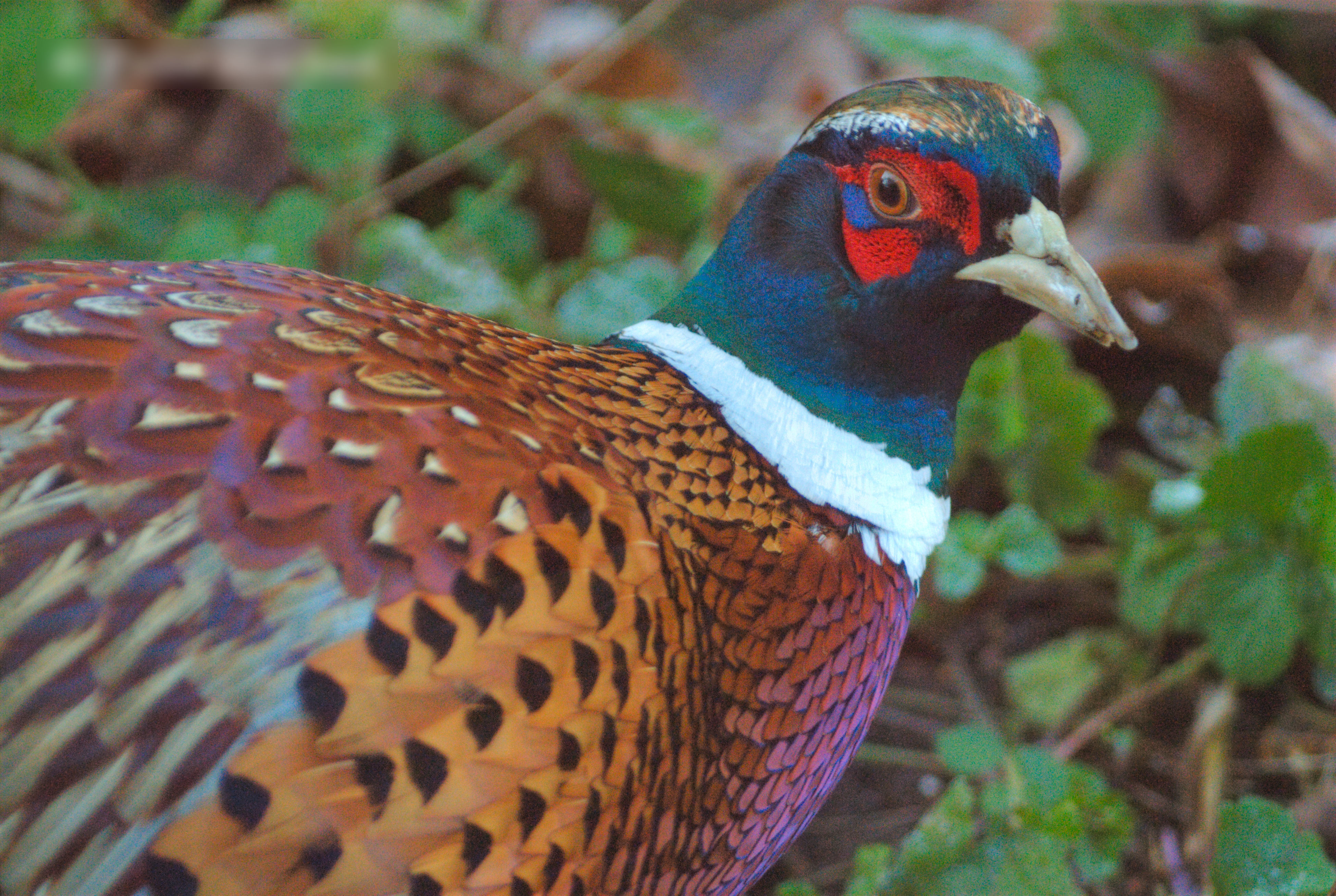 My neighbour christened this guy Bruno. Where I am, they breed pheasants in order to shoot them (I believe they call it sport). I therefore welcome escapees, and Bruno very sensibly spent the winter living in my front garden. Isn’t he beautiful?