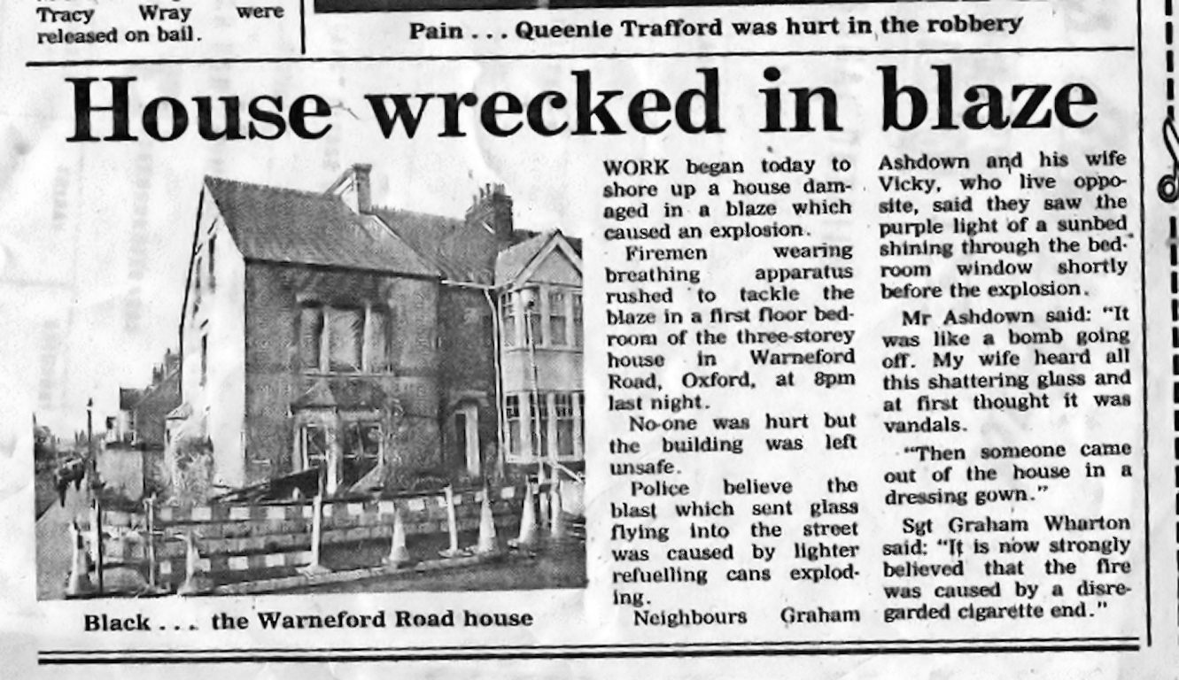 Leaving the house, Dom was still clad only in his gown. It felt like time was standing still, although only a few minutes later blue lights appeared at the bottom of the road. But what was the hold up? The engine seemed to be stopped. Instead, two firemen approached on foot to assess the damage. A brief exchange, where Dom explained that Dick was still inside. He overheard one fireman say that if Dick had been inside, then it was hopeless for him. He radioed the engine, which had been holding back, fearful of it’s wide body damaging any of the cars parked, nose-to-tail, on either side of this residential street.