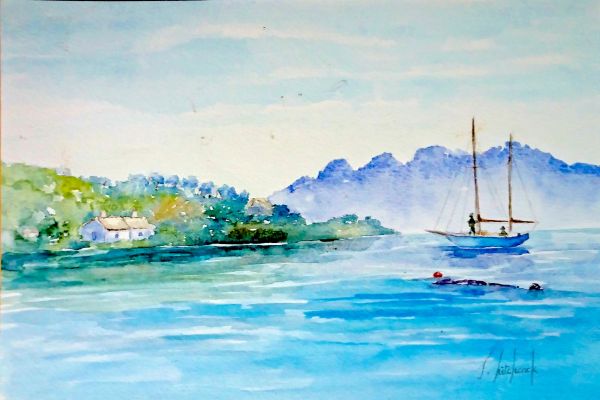 Inside the croft, Heather and Jeannie had just finished their tea. Although Heather had been told to expect Malcolm soon, the lack of a precise time had prevented her from exciting her daughter. It might take days to get up from London, so she had remained silent. As she washed the dirty crockery, she saw the smack through the kitchen window. A strange time to be fishing. As she watched it come closer, though, it appeared to be tacking straight toward her. Curiosity won the day, and Heather stepped outside for a closer look. At two hundred yards, Heather recognised the, once-strong figure sitting forward. Overwhelmed, Heather ran into Loch Ledee to greet her returning husband.