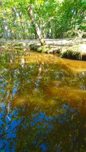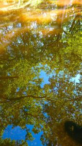 We had a day out in nearby Southampton today and on the way home, stopped at Puttles Bridge, near Brockenhurst in the New Forest. It’s a stream, no more than 6″-12″, popular locally with parents and toddlers, especially. And us. In 30º+ temperatures we spent an hour just dangling our feet in the icy water, and viewing the world through reflections.